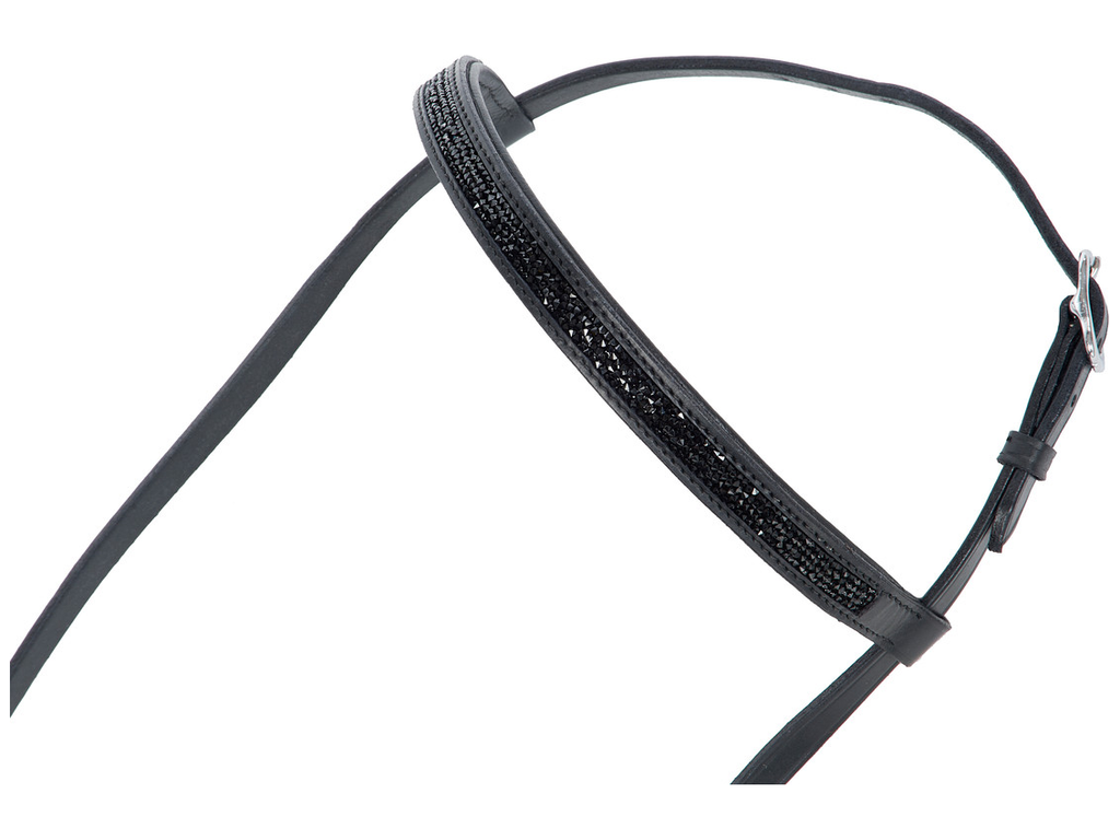 Das funkelnde Kopfstück Black Rocks von Hilbar ist mit schwarzen Schmuckelementen veredelt – lässt Dein Islandpferd elegant erstrahlen