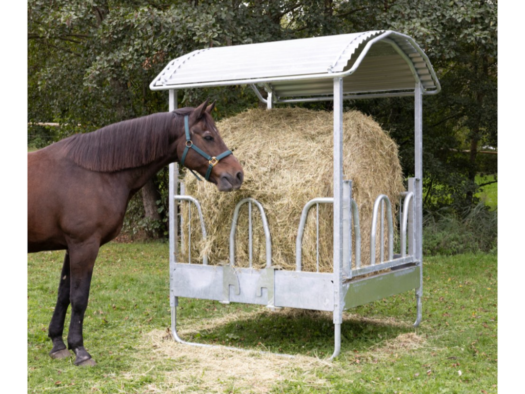 Die Viereckraufe Hobby für Pferde ist geeignet für Rund- und Rechteckballen bis 1,4 m Länge bzw. Durchmesser