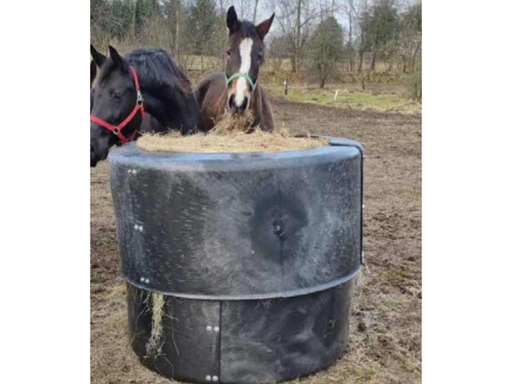 Ideal für Offenstall und Paddock: Durch die geschlossene, aber ergonomisch geformte Bauweise eignet sich der Heuspender sowohl für Gruppenhaltungen als auch für Einzelpaddocks. Er schützt den Heuballen zuverlässig vor Nässe und Verschmutzung.