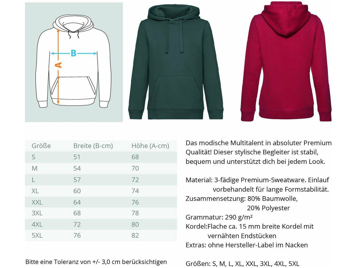 This cool motif is a great alternative to the everyday standard. The premium hoodie is also perfect as a gift. We offer quality goods at the highest level. Uniform colors in all men's, women's and children's sizes. Durable fabric quality: 300g/m² Material: 80% cotton 20% polyester. Once you have placed your order, your product will be produced exclusively for you and shipped within two working days. This means that every customer receives a unique item and we also protect the environment because we only produce when the product is ordered.