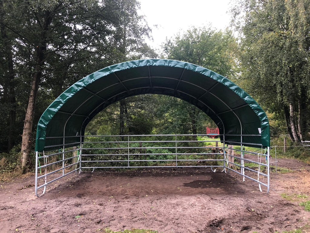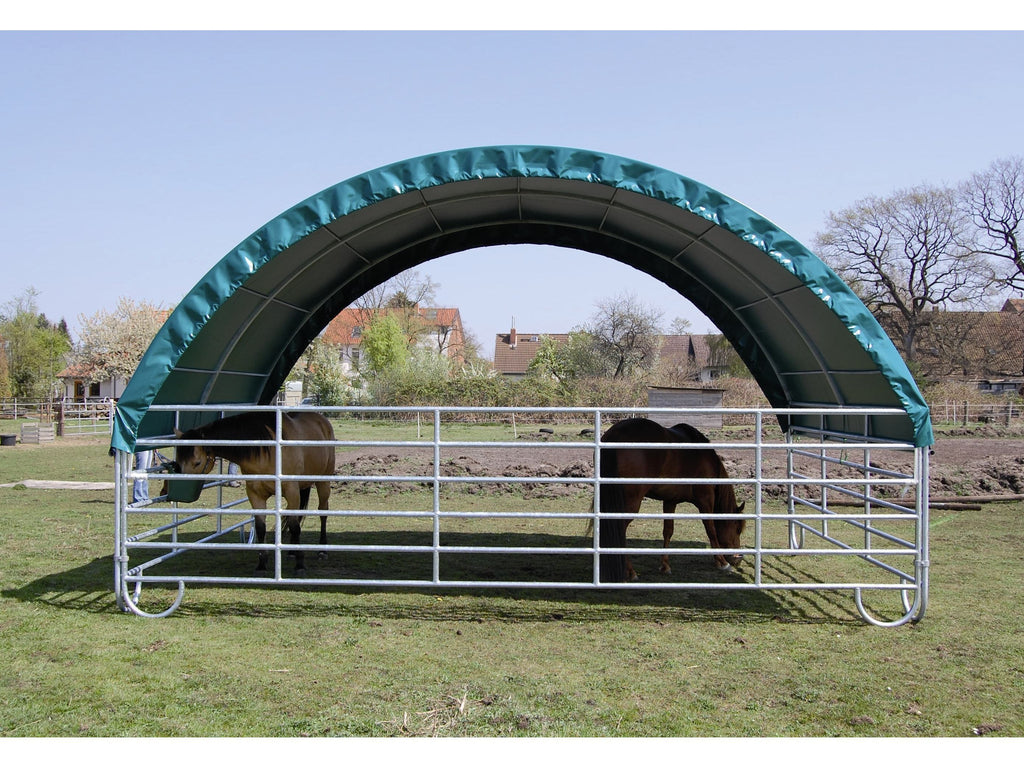 Mehr Ruhe am Paddock und weniger Stress bei Wind: Das COVER ALL Mobile Cover 4 x 6 m ist der robuste Weideunterstand für Pferdehalter, wenn Offenstall, Paddock und Heulager auch bei schlechtem Wetter funktionieren müssen. Feuerverzinkter Stahl, stabile Abspannung und Verankerung und eine PVC-Plane, die für den Stallalltag gemacht ist.