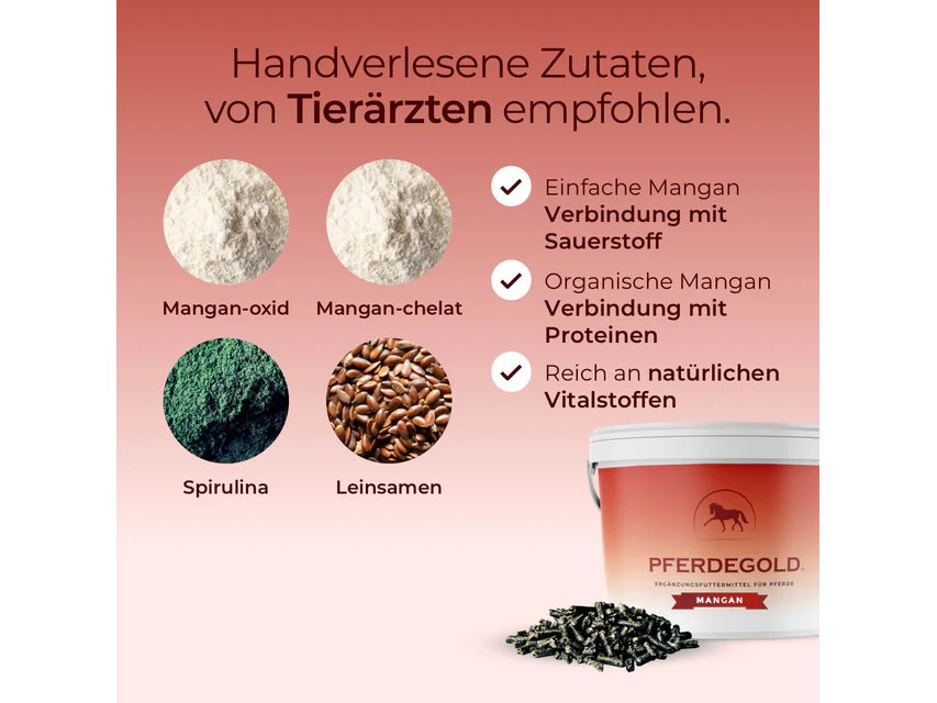 - Doppelte Manganquelle mit Protein-Chelat - Für beste Verwertung im Pferdekörper