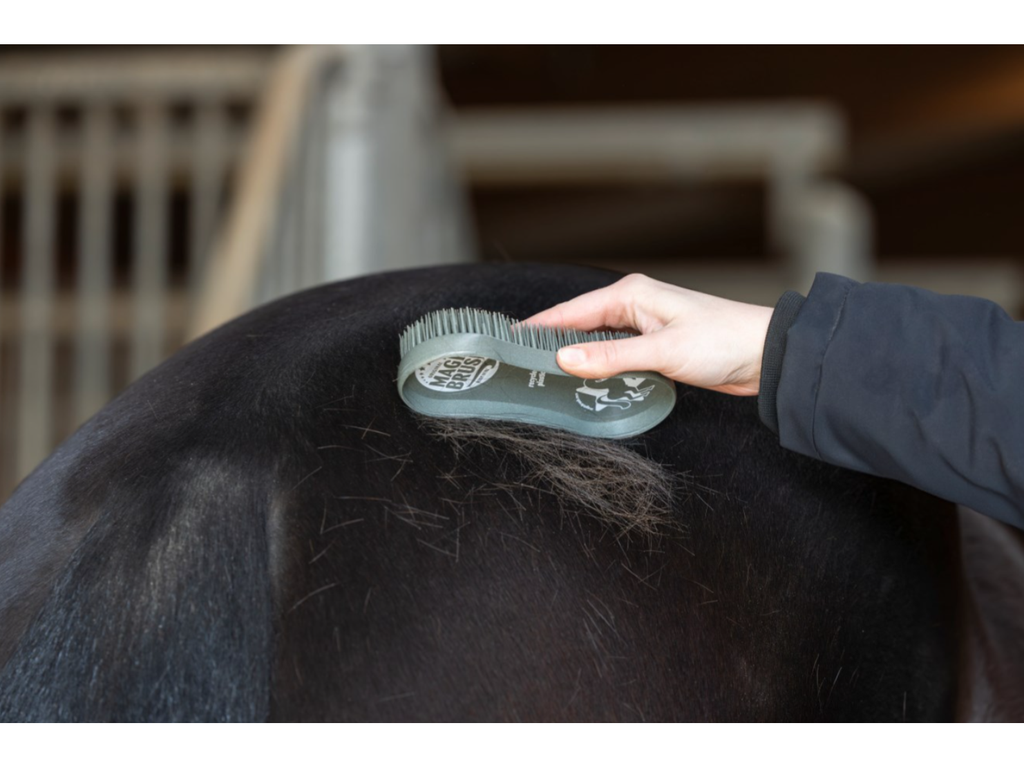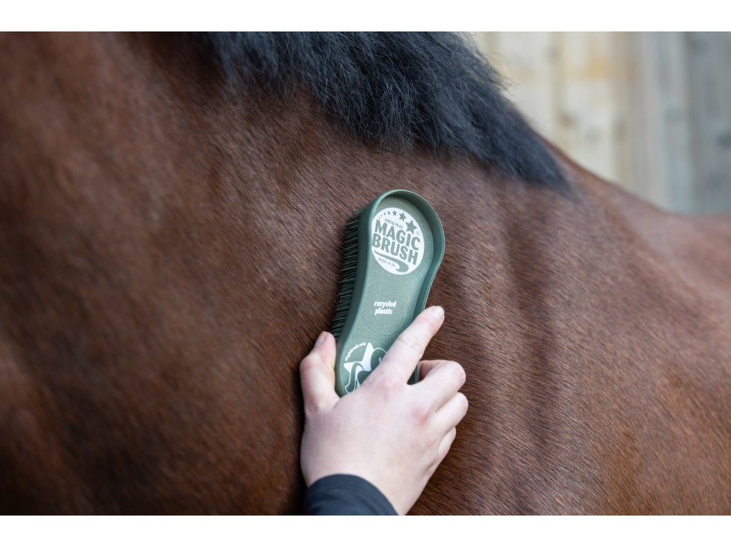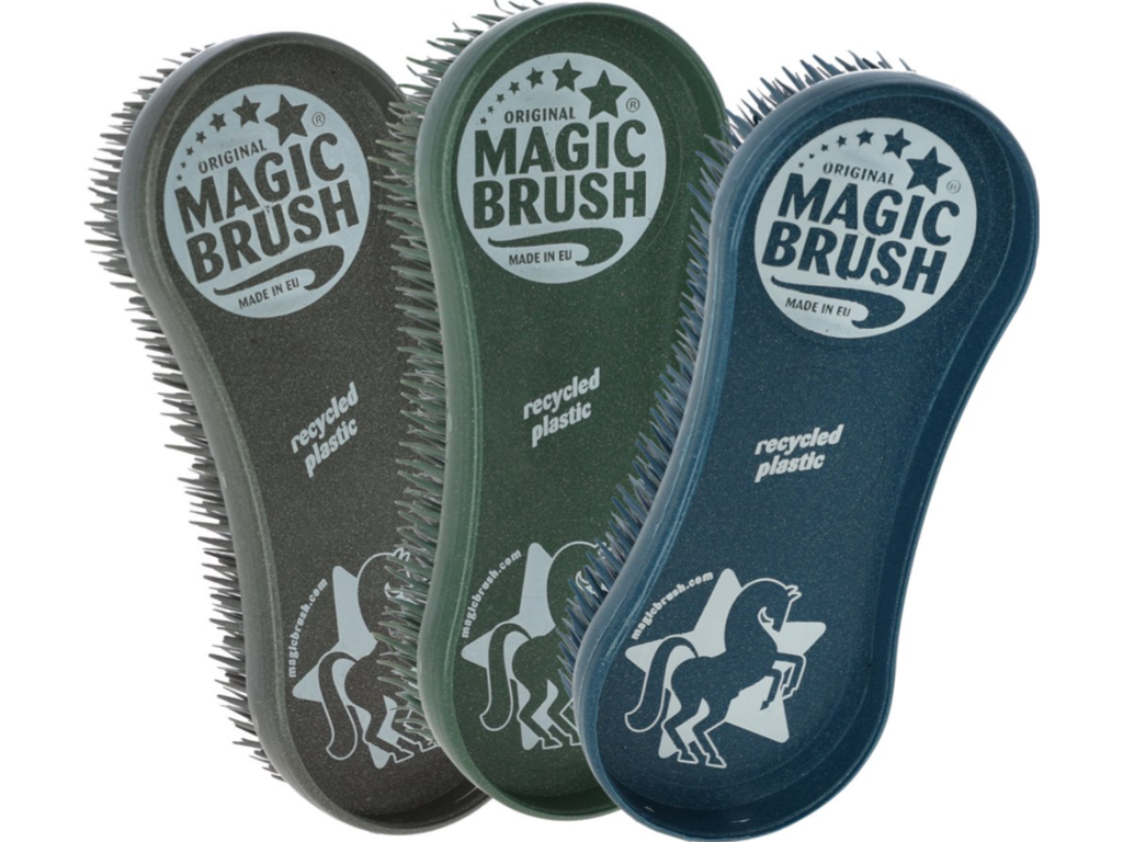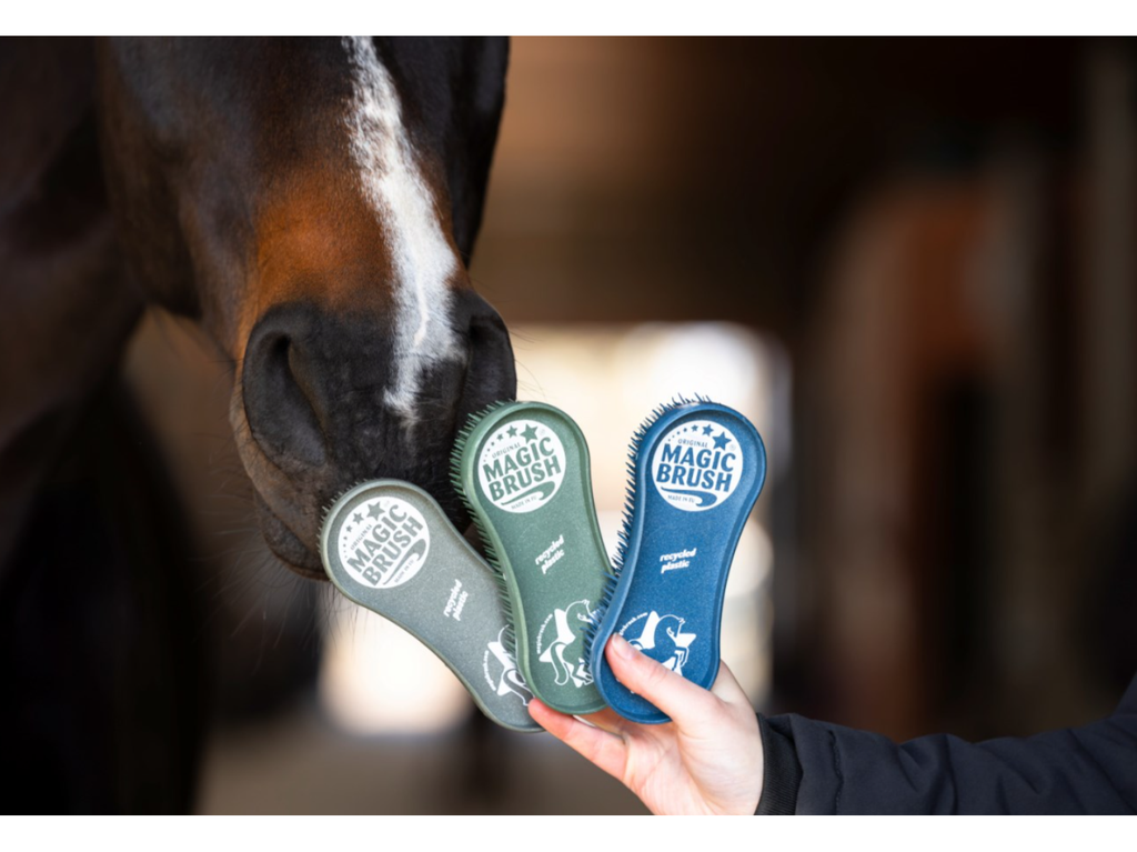 Das MagicBrush-Set Cornflowers für Deine Pferde und Ponys, in angesagten Farbtönen, ist aus recyceltem PE gefertigt – für mehr Nachhaltigkeit im Putzkasten