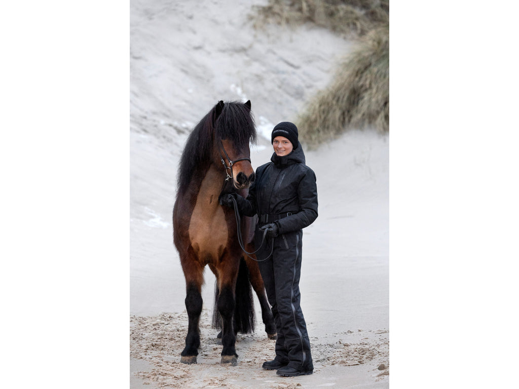 Von der reflektierenden Paspel für zusätzliche Sicherheit bis hin zu den fortschrittlichen wasserdichten Eigenschaften ist dieser Anzug eine unverzichtbare Ergänzung für Deine Reitausrüstung. Ob beim Training mit Deinen Islandpferden bei anspruchsvollem Wetter oder einfach nur bei einem rasanten Ritt im Winter sorgt der Saga Reitanzug dafür, dass Du bequem, stilvoll und bereit für jede Bedingung im Sattel sitzt.