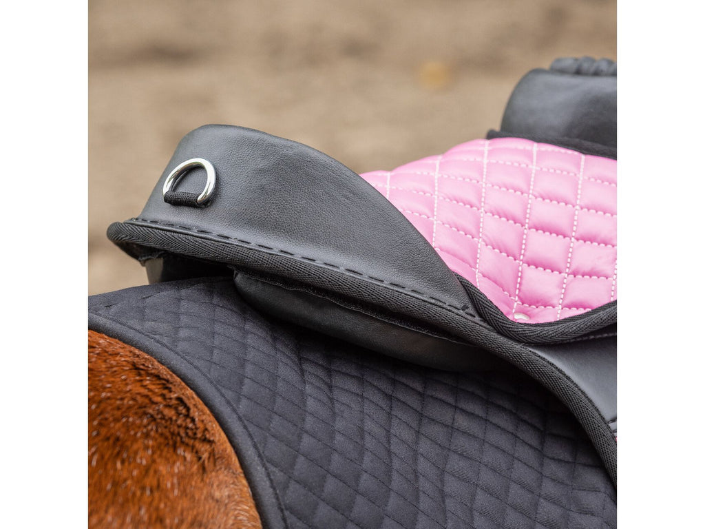An der Vorderseite des Sattels ist ein Griff integriert, an dem sich die Kinder festhalten können. Der Sattel hat zudem einen Ring am Rücken, an dem ein Schweifriemen befestigt werden kann. Zudem ist der Sattel mit Kissen ausgestattet, die mit Klettverschluss verstellbar sind.